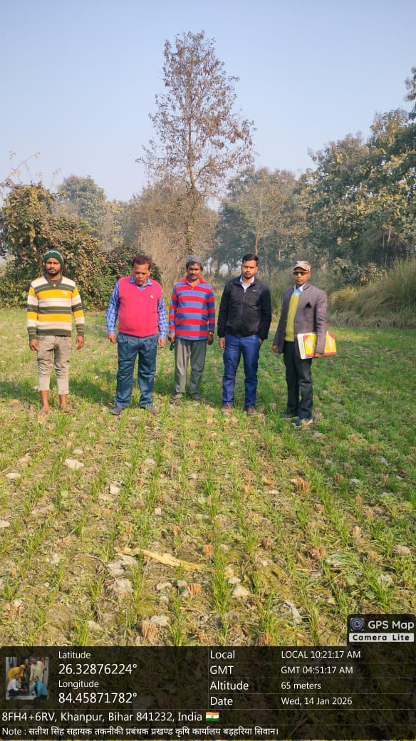 बड़हरिया प्रखण के खानपुर गांव में पौधा संरक्षण अंतर्गत जैविक घटक प्रत्यक्षण, महिला खाद सुरक्षा समूह, तथा सदरपुर पंचायत के महमूदपुर गांव में संचालित पौधा संरक्षण पाठशाला और प्रत्यक्षण प्लाट का निरीक्षण पौधा संरक्षण सिवान के सहायक निदेशक अमित शेखर और प्रखण कृषि पदाधिकारी मनोज कुमार और सहायक तकनीकी प्रबंधक सतीश सिंह की उपस्थिति में निरीक्षण किया गया। सर्वप्रथम बड़हरिया प्रखंड के खानपुर गांव में पौधा संरक्षण अंतर्गत जैविक घटक प्रत्यक्षण जो धान कटे खेत में बिना जुताई के जीरोटिलेज मशीन से गेहूं की बुआई की गई खेत में जाकर निरीक्षण किया गया। उसके बाद खानपुर महिला खाद्य सुरक्षा समूह का निरीक्षण और उनके साथ बैठक किया गया। बैठक में पौधा संरक्षण विभाग के योजना के बारे में विस्तार पूर्वक महिला किसानो को जानकारी दी गई। उसके बाद प्रखंड के सदरपुर पंचायत के महमूदपुर गांव में संचालित पौधा संरक्षण पाठशाला चतुर्थ सत्र प्रशिक्षण का भी निरीक्षण किया गया। प्रशिक्षण सत्र में इनके द्वारा मित्र कीट और शत्रु कीट के बारे में जानकारी दी गई। साथ में लाइट ट्रेप,फेरोमैन ट्रेप,स्ट्रीक ट्रेप, के बारे में जानकारी दी गई। साथ में इनके द्वारा पौधा संरक्षण पाठशाला आयोजन करने का मुख्य उद्देश्य को भी बताया गया।