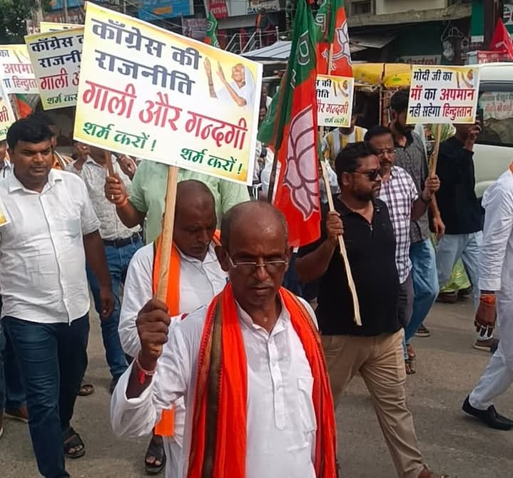 सिवान भाजपा जिलाध्यक्ष राहुल तिवारी के नेतृत्व में काग्रेस सांसद राहुल गांधी का पुतला दहन सिवान में किया गया। सिवान में पूर्व भाजपा जिला अध्यक्ष प्रोफेसर अभिमन्यु कुमार सिंह के घर से पुतला दहन कार्यक्रम यात्रा कि शुरुआत की गई जो बबूनिया मोड होते हुए जेपी चौक पर पहुंचा कर राहुल गांधी मुर्दाबाद के नारे लगाए और राहुल गांधी का पुतला दहन किया। इस कार्यक्रम में सैकड़ों भाजपा कार्यकर्ता शामिल थे। पुतला दहन के बाद मीडिया को संबोधित करते हुए भाजपा जिला अध्यक्ष राहुल तिवारी ने कहा कि कांग्रेस सांसद राहुल गांधी के वोट अधिकार यात्रा के दौरान दरभंगा जिला में आयोजित सभा के मंच से भारत के ओजस्वी कर्मठ प्रधानमंत्री माननीय नरेंद्र मोदी जी को और उनकी माता जी को अभद्र भाषा से संबोधित किया गया जो काफी शर्मनाक है। श्री तिवारी ने कहा कि यह न केवल राजनीतिक गरिमा पर हमला है बल्कि भारतीय लोकतंत्र के परंपराओं और आधी आबादी महिलाओं का अपमान है। उन्होंने कहा की वोट अधिकार यात्रा के नाम पर राहुल गांधी बिहार में केवल अराजकता फैला रहे है और बिहारियों का अपमान कर रहे है। उन्होंने कहा की राहुल गांधी सारी मर्यादा भूल गए हैं। देश के प्रधानमंत्री और उनकी स्वर्गवासी मां के लिए राहुल गांधी के मंच से अभद्र भाषा का प्रयोग किया जाना लोकतांत्रिक रूप से बहुत गलत है। कार्यक्रम में दारौंदा के भाजपा विधायक कर्ण जीत सिंह उर्फ व्यास सिंह ने मीडिया को बताया कि राहुल गांधी सहित कांग्रेस के तमाम बड़े नेता प्रधानमंत्री नरेंद्र मोदी को 107 से अधिक बार अमर्यादित भाषा का उपयोग कर चुके है। उन्होंने बताया कि माननीय मोदीजी को कांग्रेस के नेताओं ने कभी मौत का सौदागर , कभी नाली का कौड़, कभी कॉकरोच, कभी वायरस, कभी भस्मासुर, कभी रावण, कभी दुर्योधन जैसे शब्दों का प्रयोग पहले भी कर चुके है। राहुल गांधी सता पाने कि जल्दबाजी में हमेशा सनातन और संविधान की धज्जियां उड़ा रहे है। महागठबंधन के चाल और चरित्र का आक्रोश गाली बनाकर जुबान से बाहर निकल रहा है। कांग्रेस और राजद के कार्यकर्ताओं ने जिस तरह से प्रधानमंत्री नरेंद्र मोदी जी के बारे में अभद्र एवं अपमान जनक भाषा का प्रयोग कर रहे है वह काफी शर्मनाक है। मोदी जी देश के 140 करोड़ जनता के नेता है। तेजस्वी यादव राहुल गांधी राजनीतिक तुष्टीकरण से गाली गलौज और अपमान तक पहुंच गए हैं। यही महागठबंधन का राजनीतिक ट्रेनिंग है।राजद का चरित्र हमेशा से समाज में भ्रम फैलाने वाला है और कांग्रेस आज उसी रास्ते पर चल रही है। भाजपा के वरिष्ठ नेता उमा शंकर साह ने मीडिया को संबोधित हुए कहा कि बिहार से 1985 से लेकर 2005 तक जंगल राज वाला बिहार नहीं है। यह बिहार अब विकास के रास्ते पर चल पड़ा है। भाजपा कि सरकार में बि