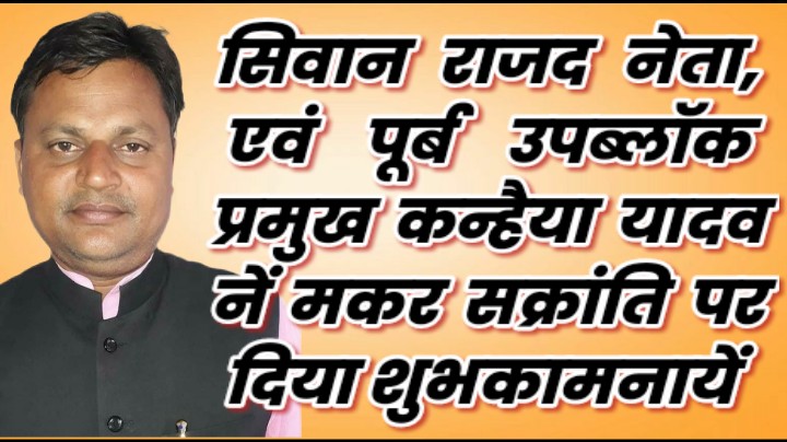 सिवान के पूर्व उप ब्लॉक प्रमुख एवं प्रखंड राष्ट्रीय जनता दल (राजद) नेता कन्हैया यादव ने मकर संक्रांति पर जिलेवासियों को हार्दिक शुभकामनाएं दी