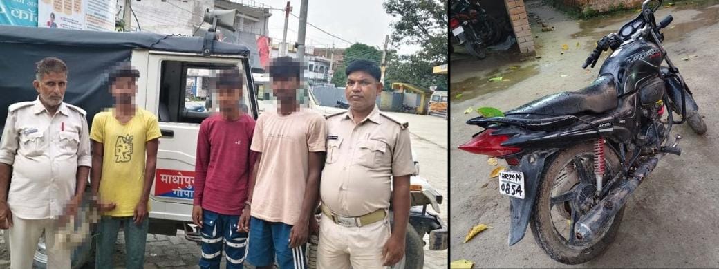 गोपालगंज :- एक चोरी की बाइक के साथ 3 अभियुक्त गिरफ्तार।