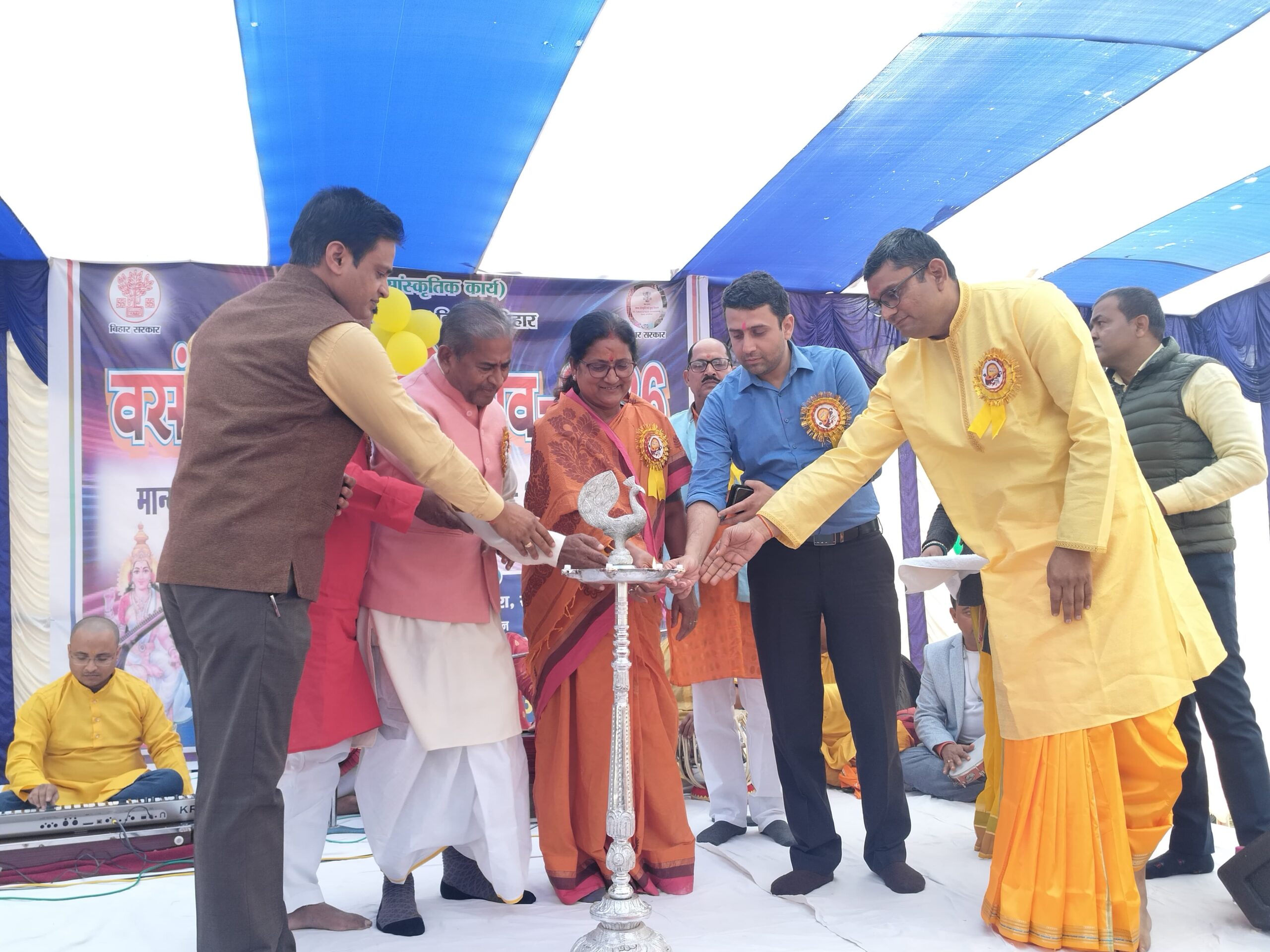कला, संस्कृति एवं युवा विभाग, बिहार तथा जिला प्रशासन के संयुक्त तत्वावधान में वसंत पंचमी महोत्सव–2026 के अवसर पर स्थानीय डुमरा क्रिकेट ग्राउंड में आयोजित भव्य सांस्कृतिक कार्यक्रम का उद्घाटन जिलाधिकारी सीतामढ़ी श्री रिची पांडेय, माननीय विधायक रीगा श्री बैधनाथ प्रसाद, माननीया विधायक परिहार श्रीमती गायत्री देवी, एमएलसी श्रीमती रेखा कुमारी,माननीय विधायक सीतामढ़ी श्री सुनील कुमार पिंटू एवं पूर्व विधायक श्री रामनरेश यादव के द्वारा संयुक्त रूप से दीप प्रज्वलित कर किया गया।